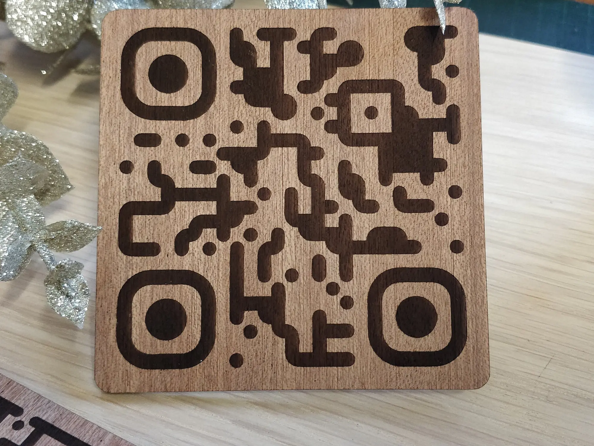 Custom QR Code Laser Engraved Coaster, 90mm square, Table, Tags, Locker, Restaurant, Clubs