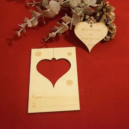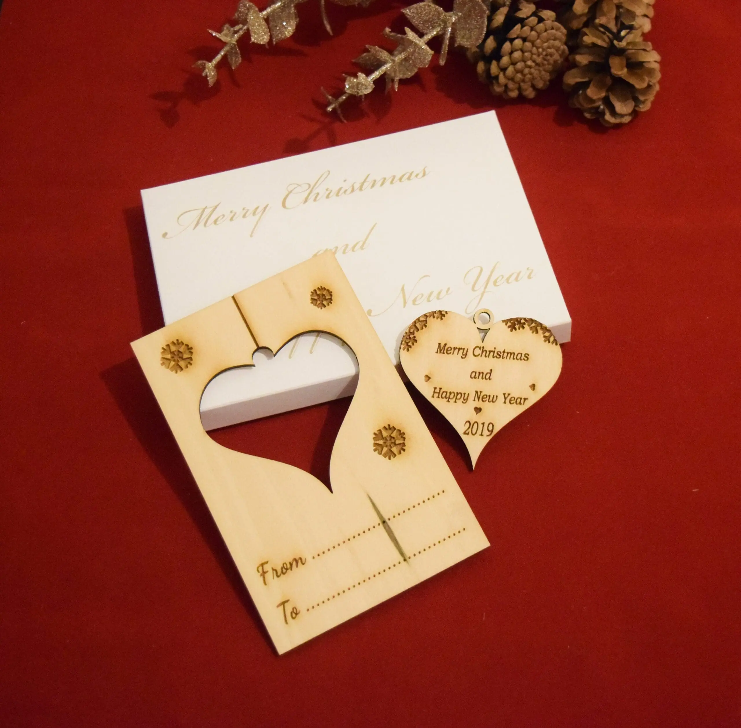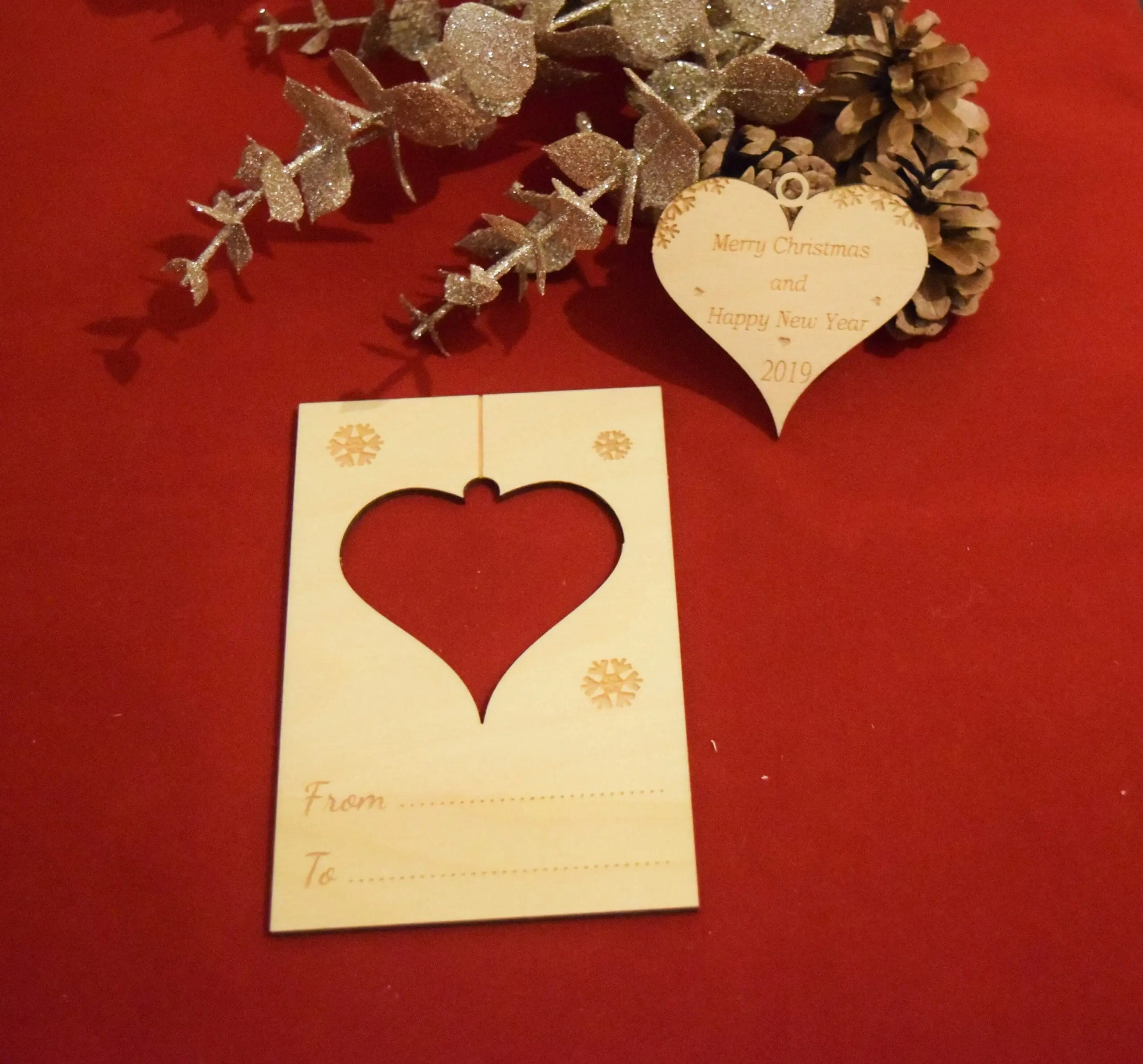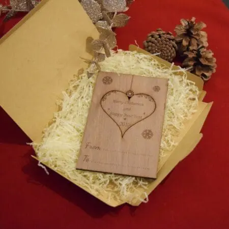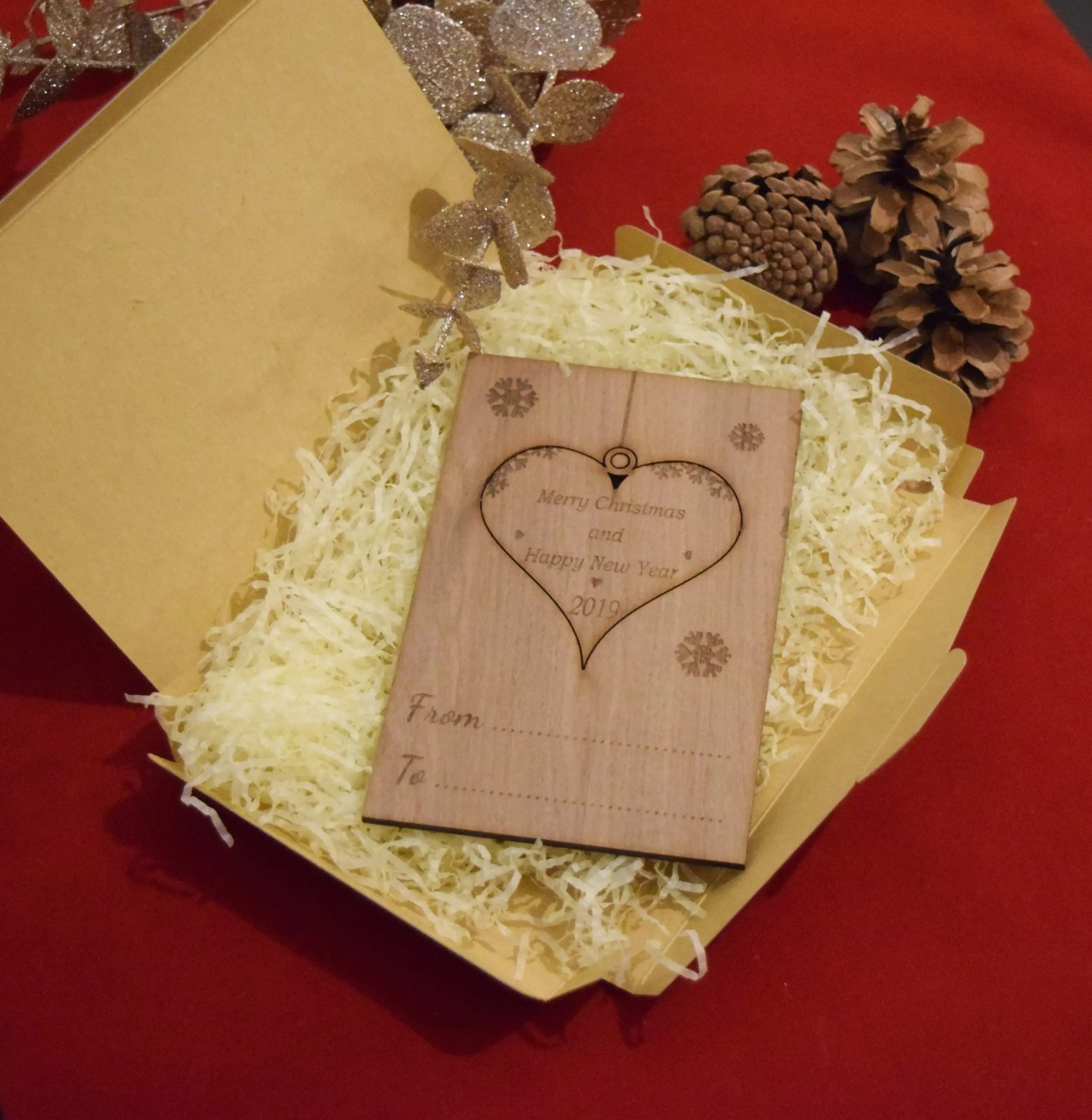 Stylish and beautiful personalised wooden Christmas heart postcard, a trinket