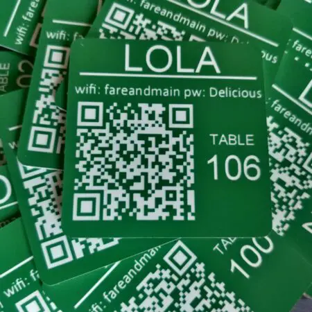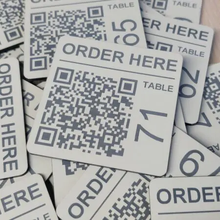 Custom QR Code Laser Engraved Discs, 150mm square, Table, Tags, Locker, Restaurant, Clubs