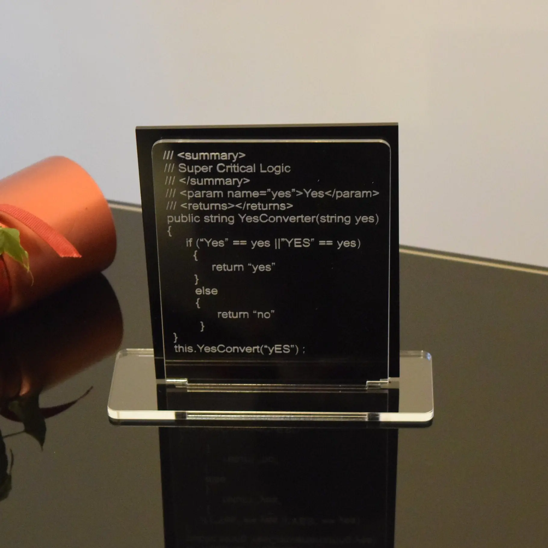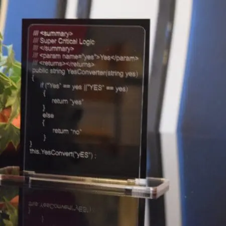 The desk sign base is 150 mm x 50 mm 5 mm clear Acrylic