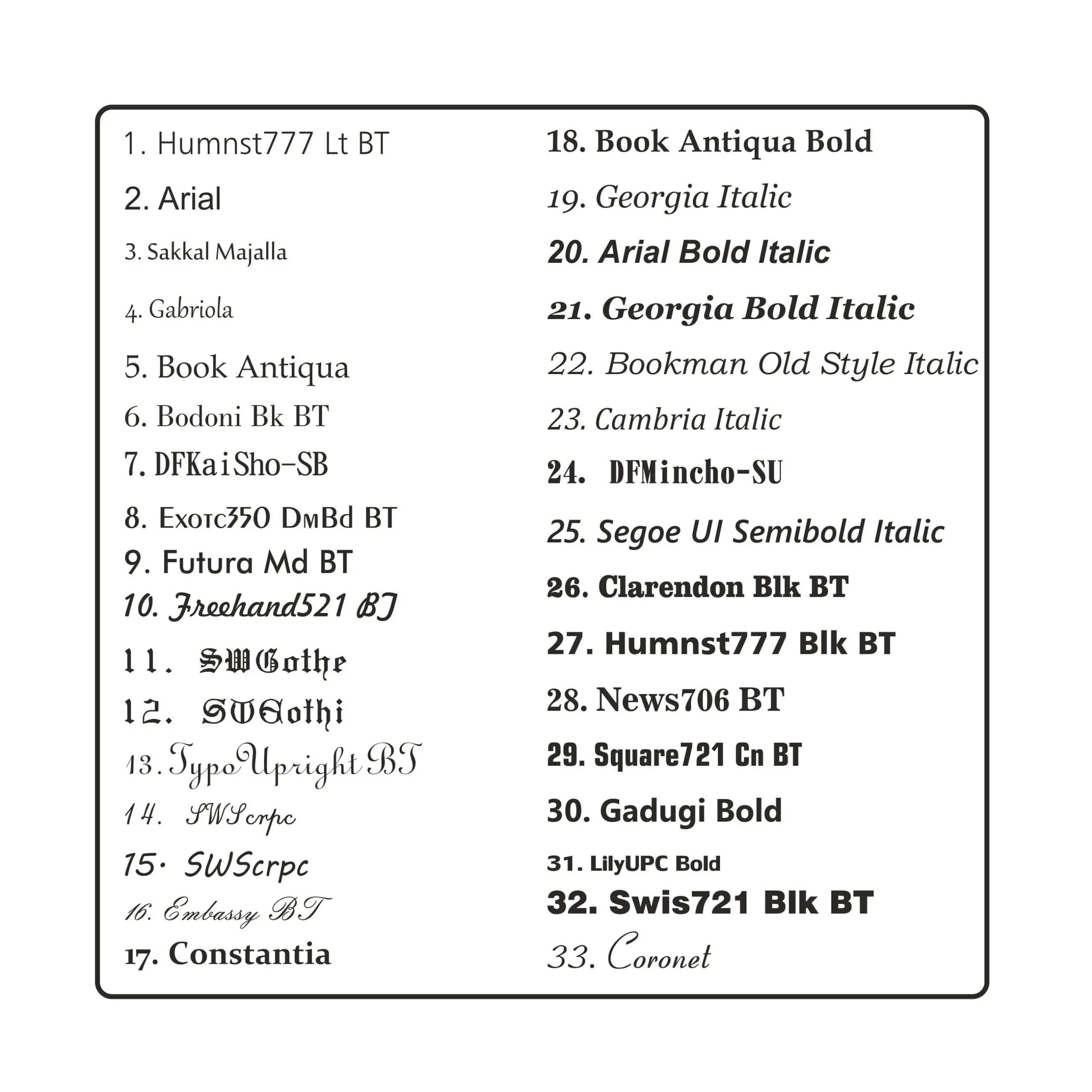 Multiple fonts are acceptable