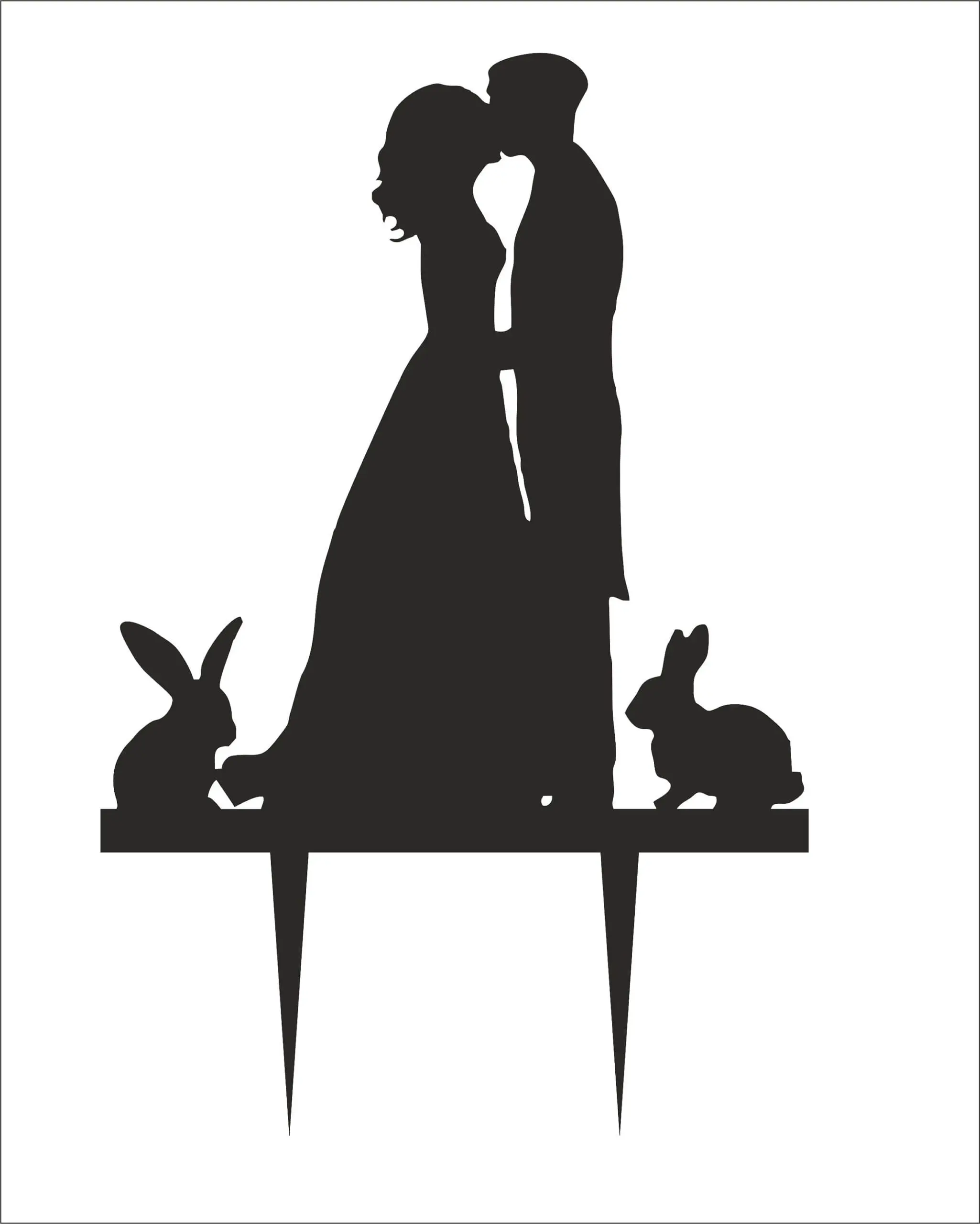 Fiance & Fiancee Cake Toppers with Rabbits Engagement high quality acrylic, Bride and Groom, Silhouette Cake Topper