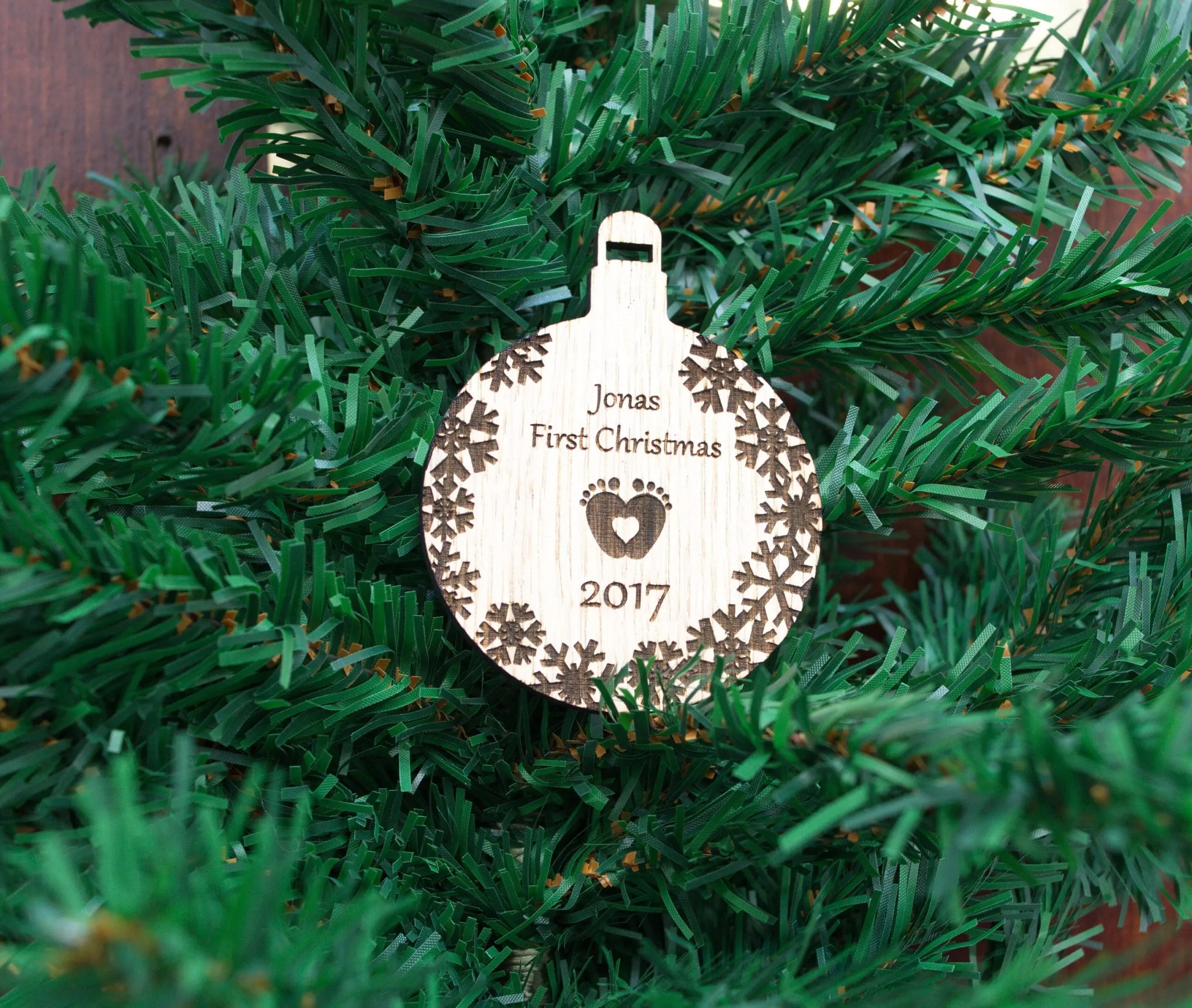 Oak Baby’s First Christmas Personalised Wooden Bauble Tree Decoration Xmas Gift
