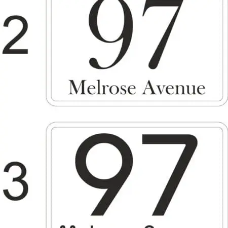 – 2 x 130mm tall by 180mm wide vinyl sticker of your house number & street name
