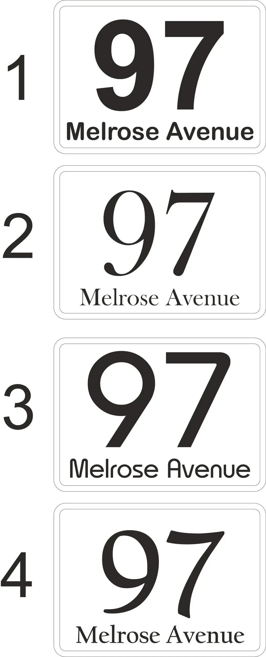 – 4 x 130mm tall by 180mm wide vinyl sticker of your house number & street name